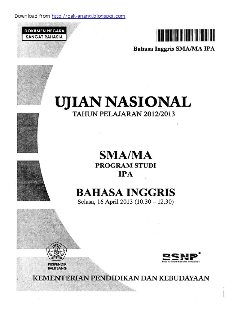Contoh Soal Ujian Nasional Smk Bahasa Inggris Ujian Nasional Sumber : ujiannasional21.blogspot.com