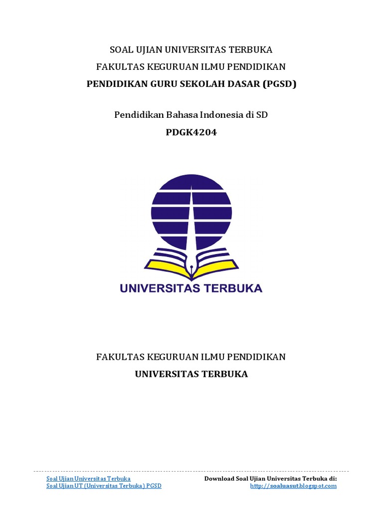 Soal Ujian UT PGSD Beserta Kunci Jawaban Soal UT PGSD Soal UAS UT PGSD Soal Universitas Terbuka PGSD Download Soal PGSD Soal S1 PGSD LM UT PGSD Latihan Mandiri PGSD Senang sekali kami bisa menyapa teman teman Mahasiswa Universitas Terbuka pada artikel kami ini Sudah menjadi komitmen kami untuk berbagi Soal Ujian UT pada teman teman Mahasiswa