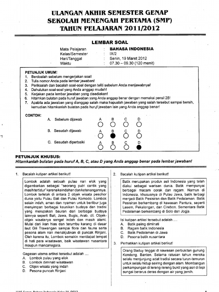Berbagi dan Belajar Naskah Soal UN Bahasa Indonesia SMK Sumber : pak-anang.blogspot.com