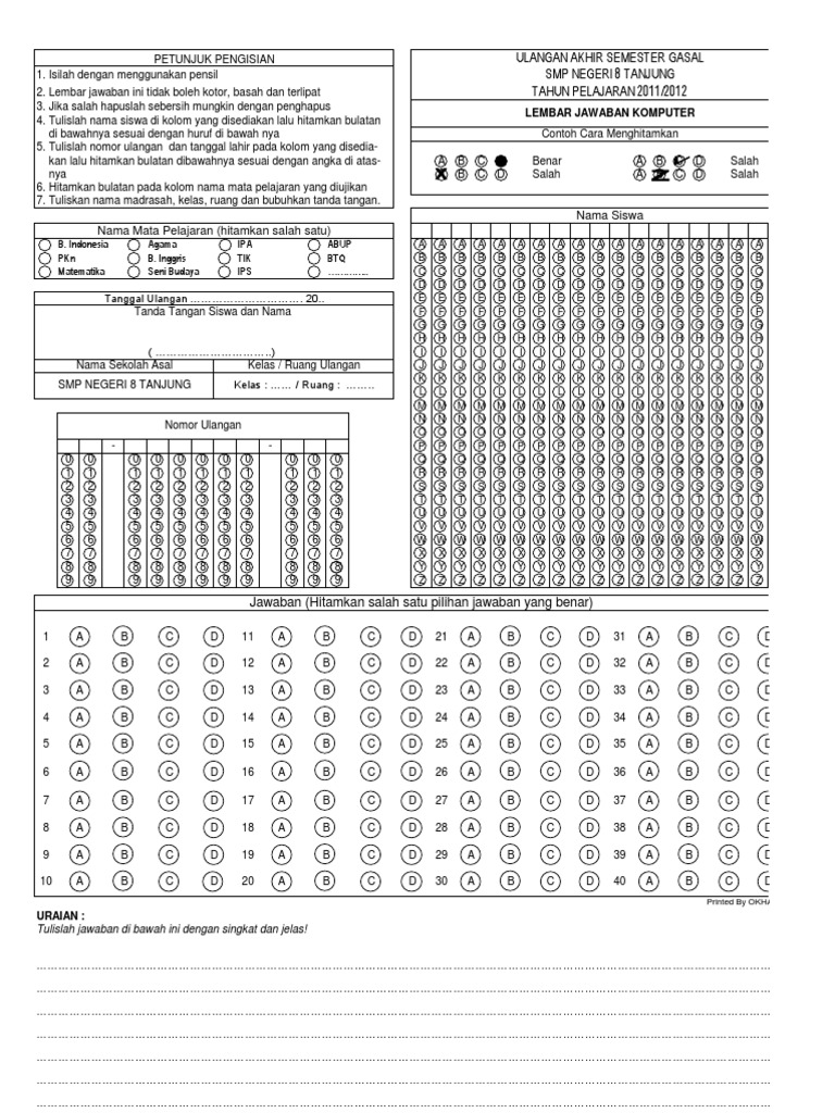 Contoh LJK Lembar Jawaban Komputer Sd Smp Sma Sumber : id.scribd.com