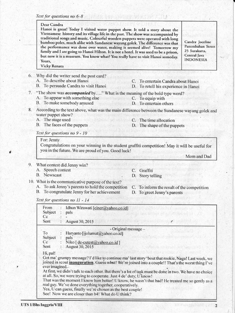 soal uts bahasa inggris kelas 8 semester ganjil Java Puppetry Sumber : es.scribd.com